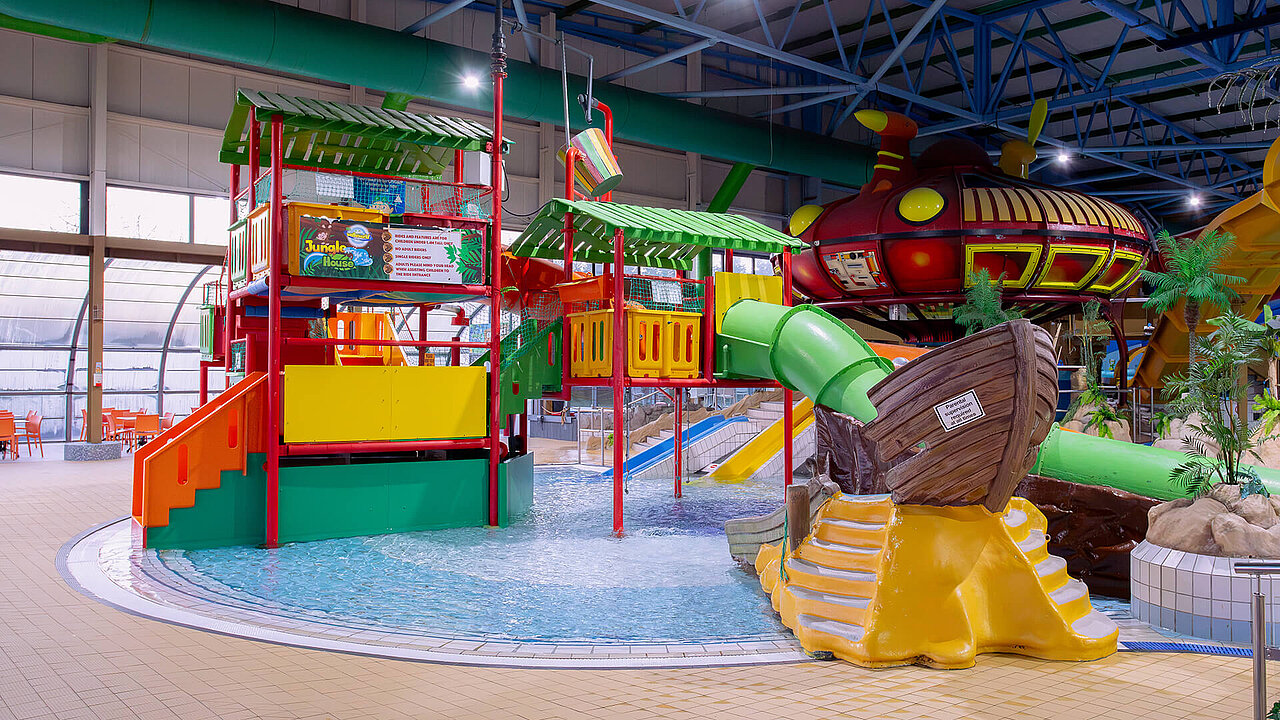 Suitable for younger visitors – tackle the scramble net or dodge the monsoon monster splash, trigger the five water cannons, edge across the rope bridge and try to escape using the two nursery flumes! Hide away in the jungle tunnel and swing across the pool using the rope swings.