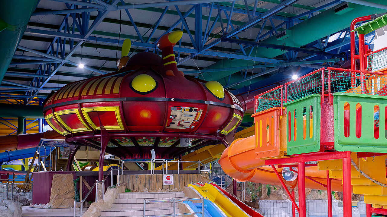To ride the Space Bowl, you have to be 1.1m tall and a strong swimmer.